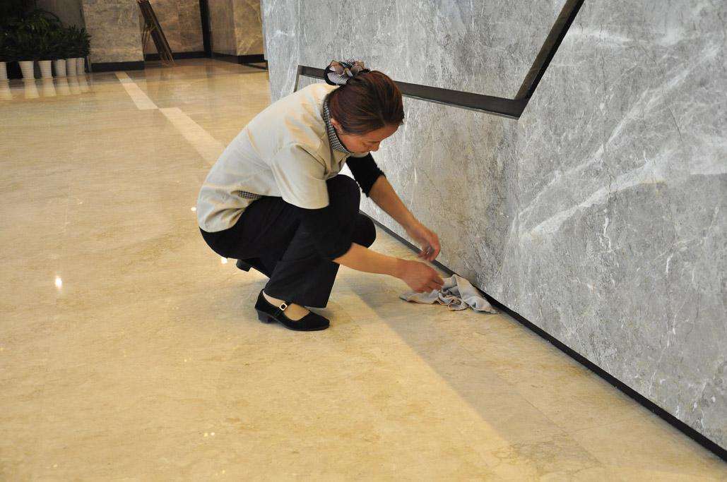 (7)、拖擦地面:潔凈、干爽不留水跡。擦拭臺(tái)面、面盆、水龍頭、玻璃鏡。